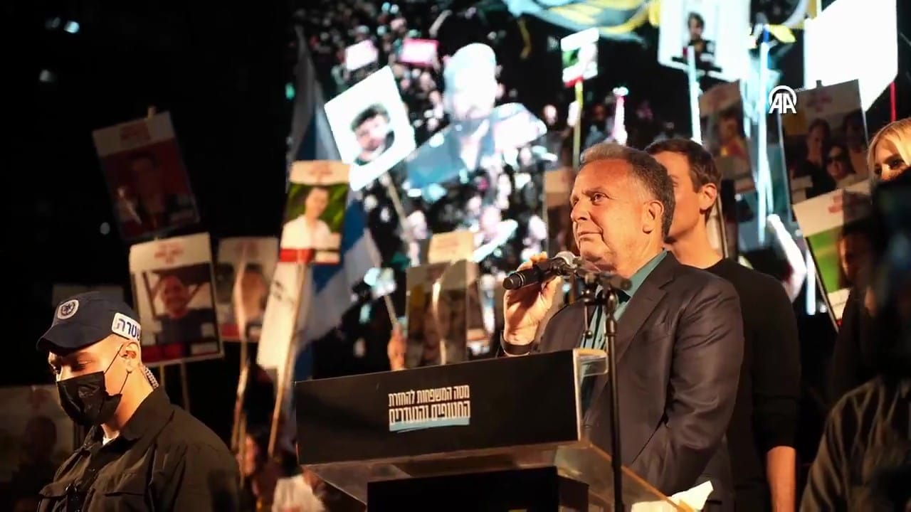 Netanyahu’nun adı her geçtiğinde tepki gösteren kalabalık, Netanyahu karşı protestolarda sıkça kullanılan “utan, utan, utan” şeklinde İbranice slogan attı.