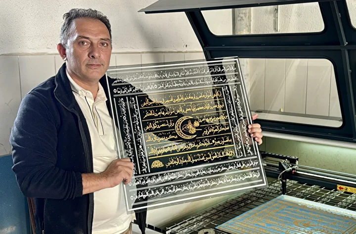 Makine teknolojisi öğretmeni İbrahim Aksoy, 7 ay süren çalışmayla Ahi Sancağı’nı kazıma yöntemiyle cama işledi.
