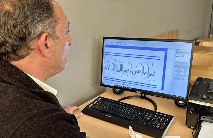 Yazılımı hazırlamaya karar vermesinin ardından yaklaşık 5 ay süreyle Ahi Sancağı’nın birebir aynısı için milimetrik şekilde ölçümler yaptığını, Arapça harfler olması nedeniyle geçiş ve bağlantı noktaları için tek tek uğraştığını anlatan Aksoy, hat ustalarından da destek alarak, eserin hat sanatına uygun hale getirildiğini kaydetti.